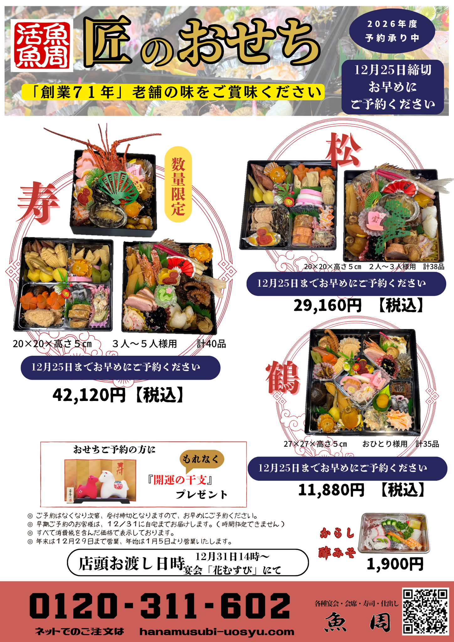 【限定数20】魚周創業71年の 老舗の味 渾身のおせち